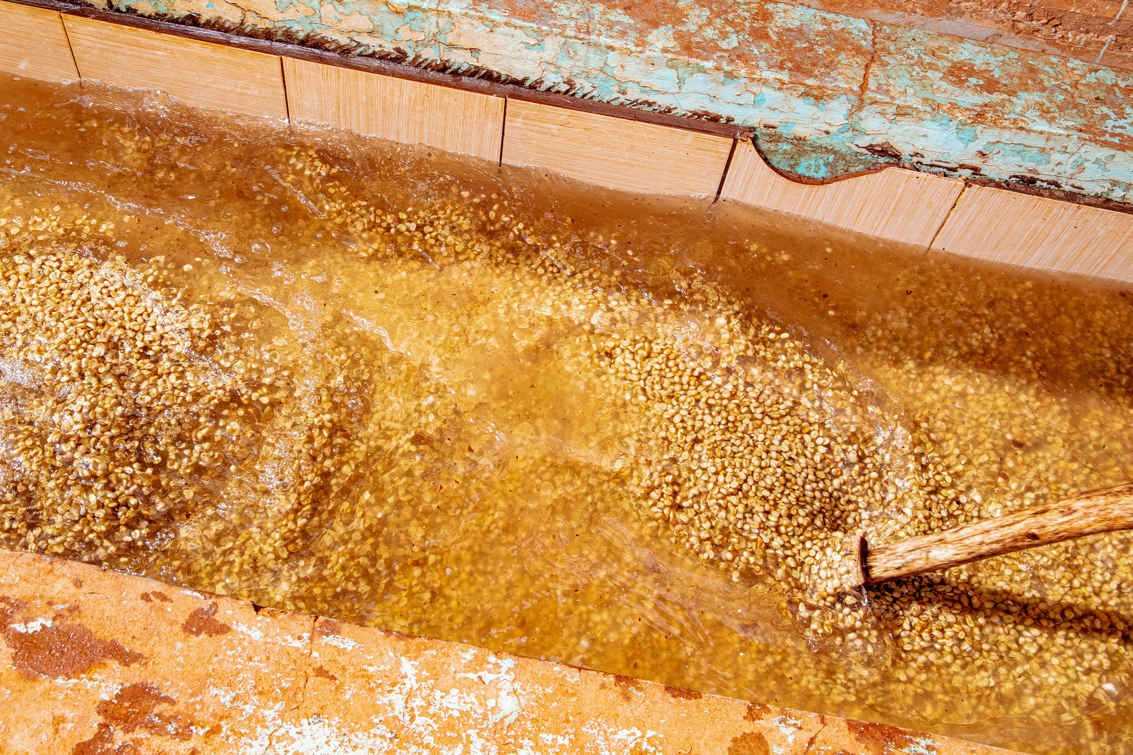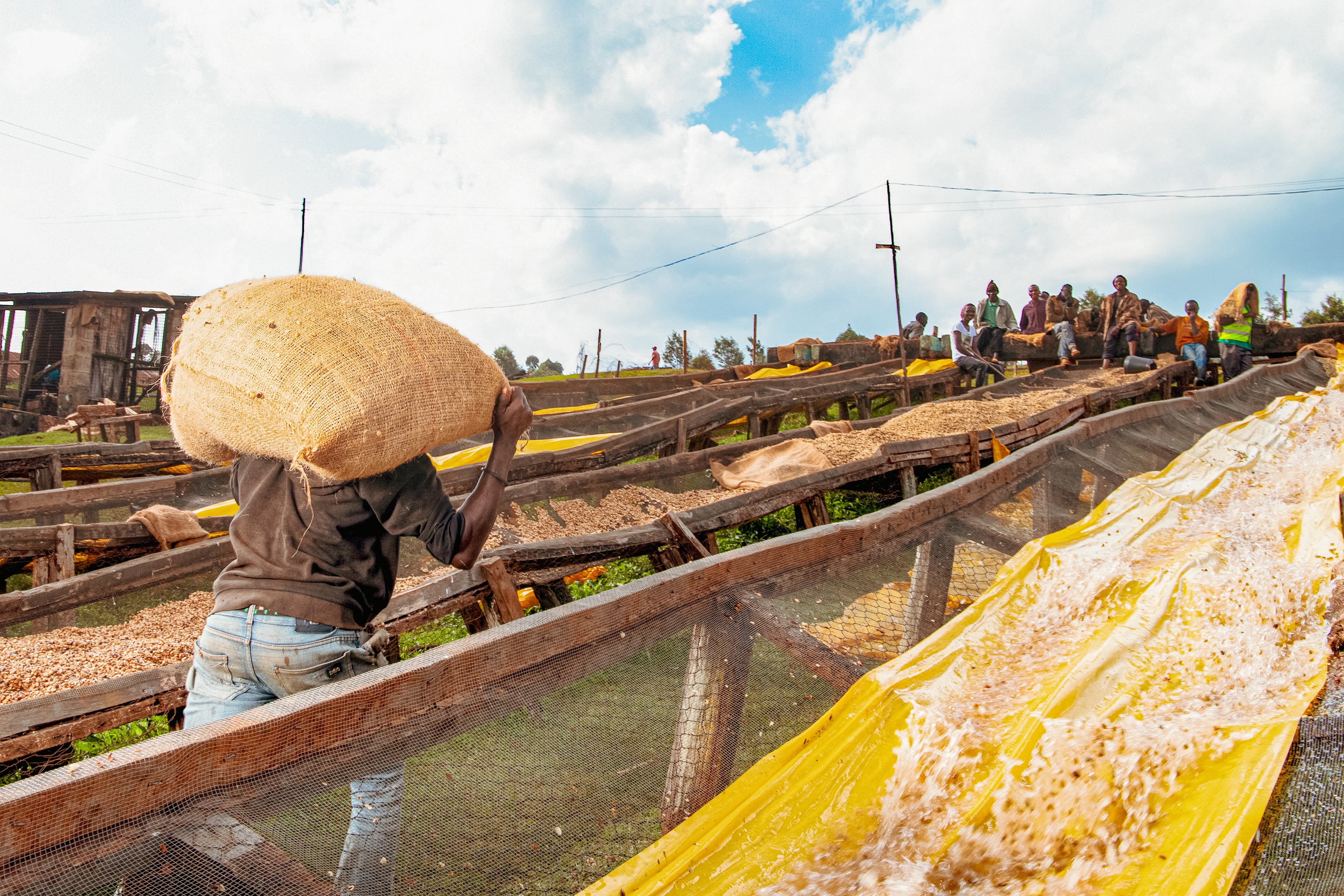 Las condiciones de suelos volcánicos, clima templado y cosecha manual selectiva permiten desarrollar granos densos y complejos. Guama AA está compuesto por SL28, SL34, Batian y Ruiru 11, combinando variedades históricas de Kenia con otras más resistentes que garantizan estabilidad y continuidad productiva. Tras la recolección en su punto óptimo de maduración, las cerezas son despulpadas, fermentadas y lavadas cuidadosamente antes de un secado controlado que preserva pureza y estructura en taza.