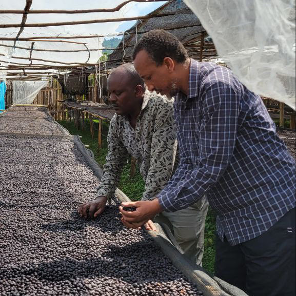 El proceso es lavado, con una selección manual de cerezas, despulpado, fermentación y lavado, seguido de un secado de 10 a 12 días en camas africanas elevadas. Durante este tiempo, el café es cuidadosamente protegido del sol intenso y de la humedad, permitiendo un secado uniforme que preserva la limpieza y definición.