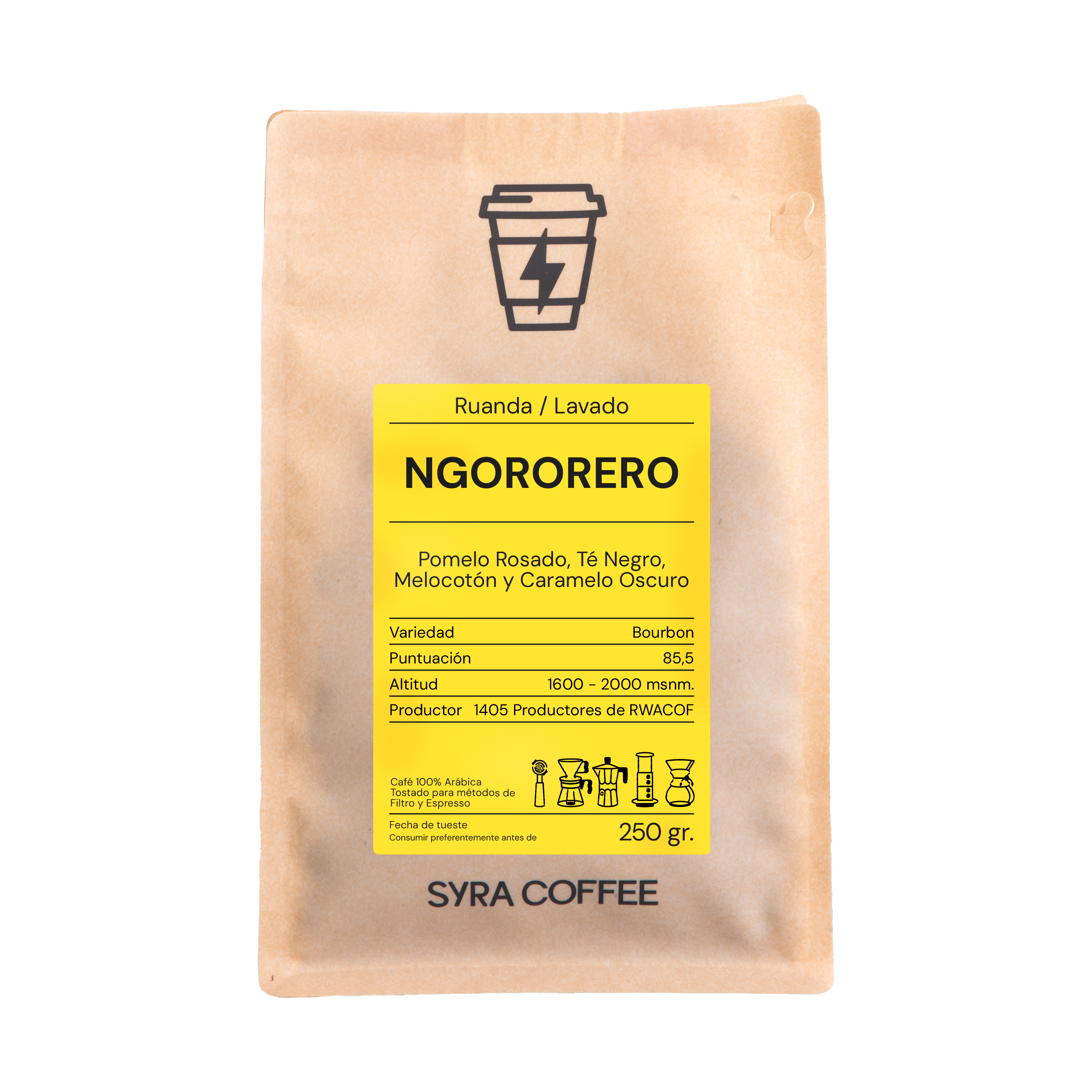 Desde las colinas del oeste de Ruanda, entre 1.600 y 2.000 metros sobre el nivel del mar, nace Ngororero: 100% variedad Bourbon producido por 1.405 pequeños caficultores que forman parte de RWACOF. Este lote representa la excelencia de la estación de lavado de Ngororero, reconocida mundialmente por su consistencia y calidad.