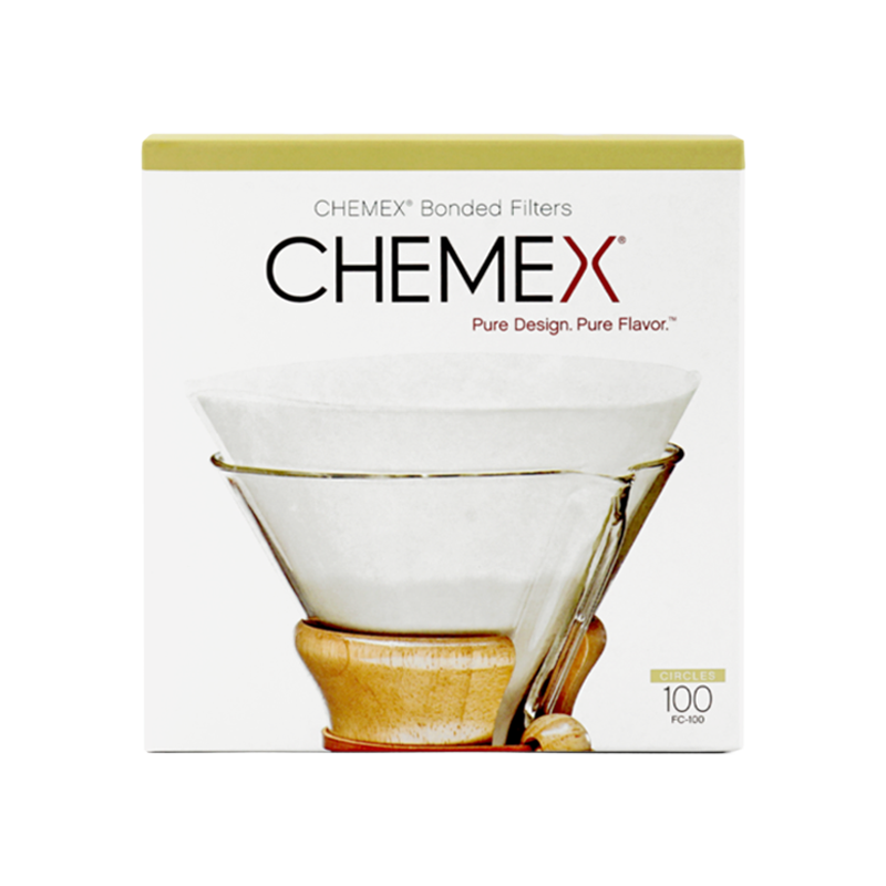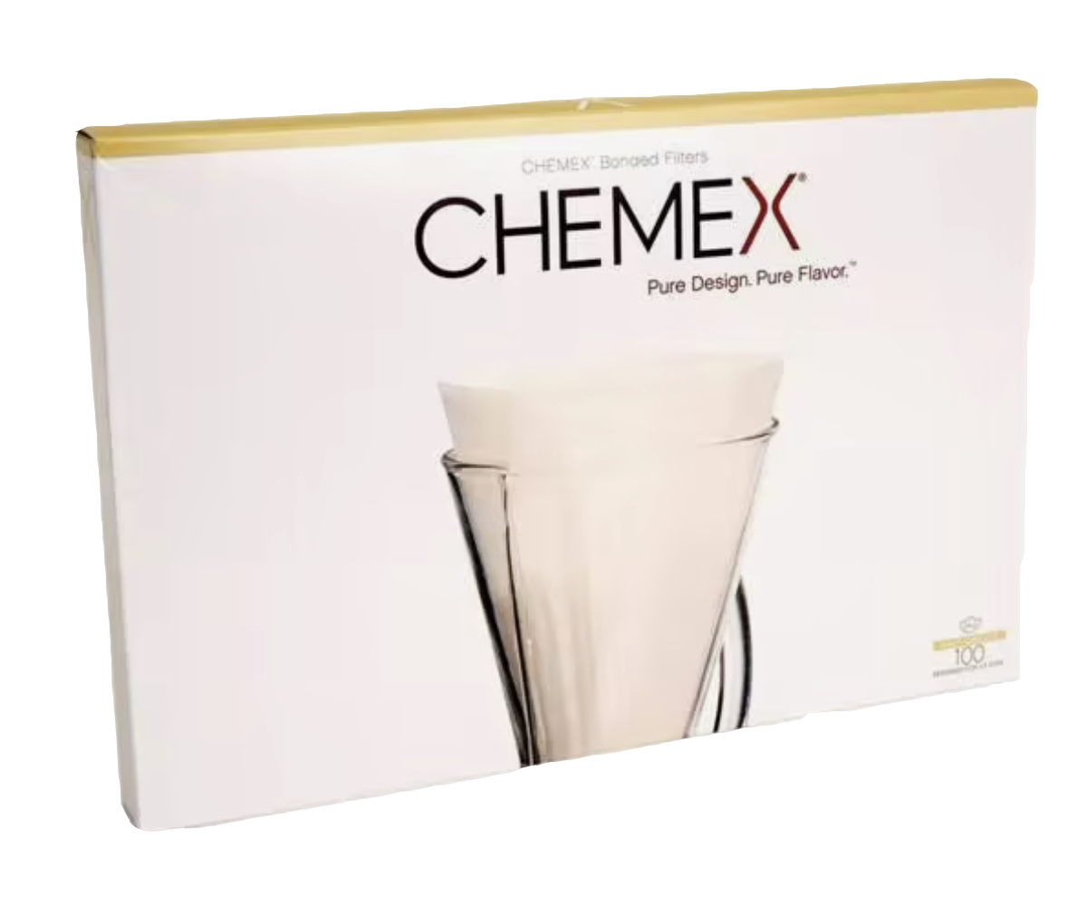 100 filtros Chemex para la cafetera Chemex. Al permitir que sólo pasen los aceites aromáticos del café y la cafeína, el filtro de papel garantiza un café de sabor limpio sin los elementos amargos.