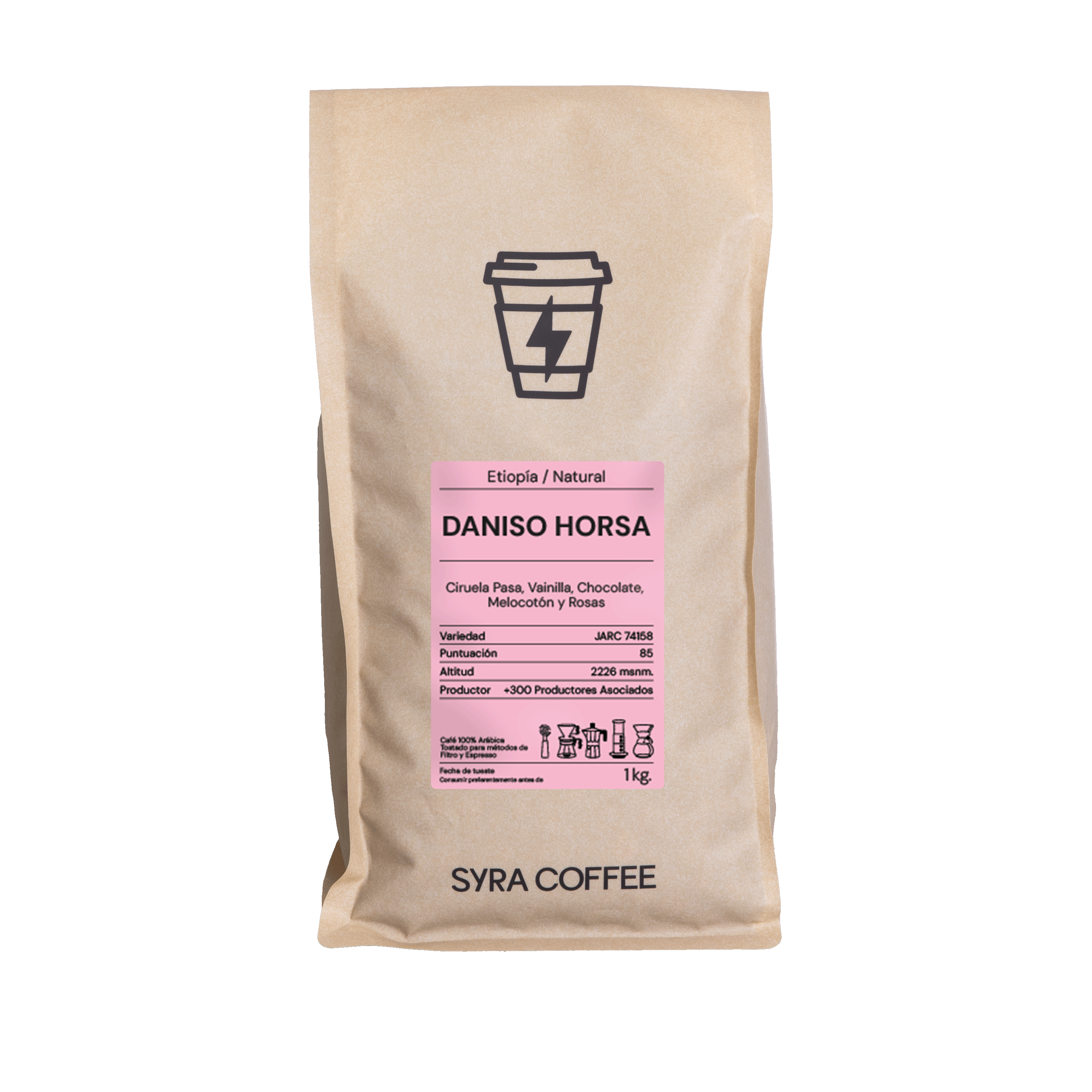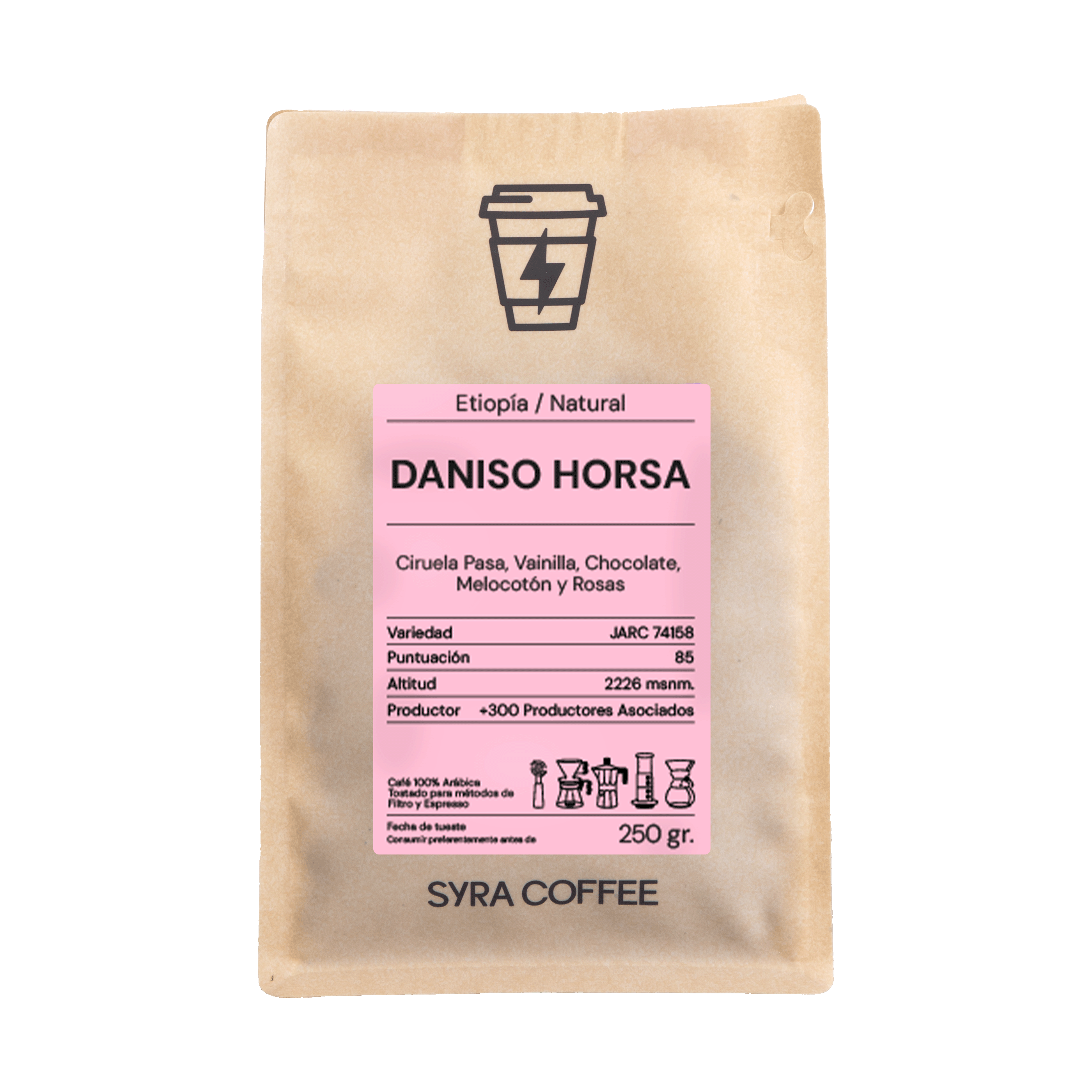 Daniso Horsa nace en la región de Sidama, en el distrito de Bensa (Etiopía), a 2.226 metros sobre el nivel del mar. En esta altitud, donde los cafés se desarrollan lentamente y alcanzan una alta densidad, se construyen perfiles intensos, complejos y profundamente aromáticos. Este lote refleja el carácter distintivo de la zona de Bombe, conocida por cafés expresivos, con fruta madura y matices florales bien definidos.