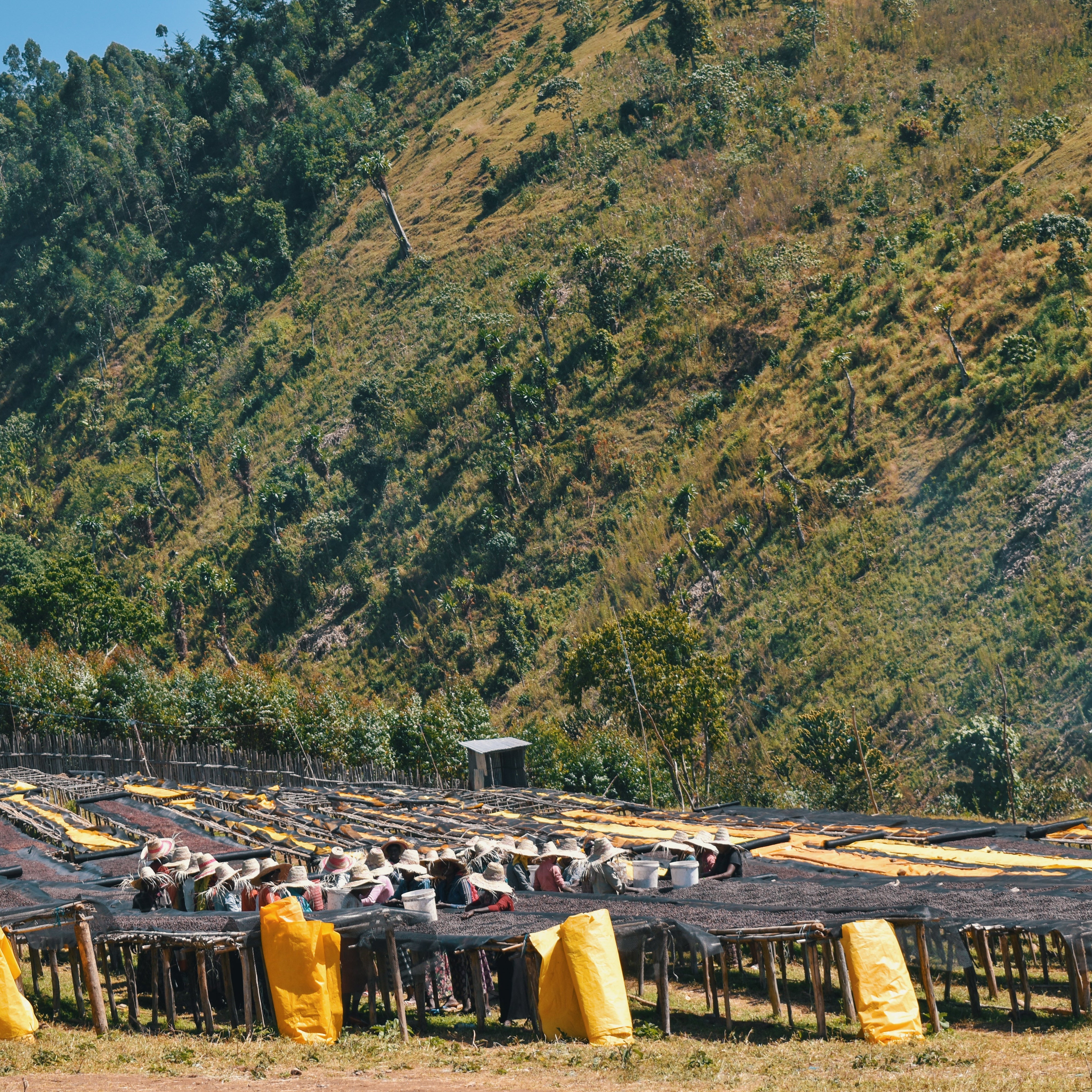 El café es liderado por Daniso Horsa, productor local que trabaja junto a más de 300 pequeños agricultores de la región. Este modelo de outgrowers permite consolidar volúmenes manteniendo calidad, a través de una red de productores que cultivan café en pequeñas parcelas en condiciones de gran altitud. En un entorno donde el café convive con la vida diaria de la comunidad, cada cosecha es el resultado de un trabajo colectivo exigente, desde el cuidado de los árboles hasta la selección manual de las cerezas en su punto óptimo.