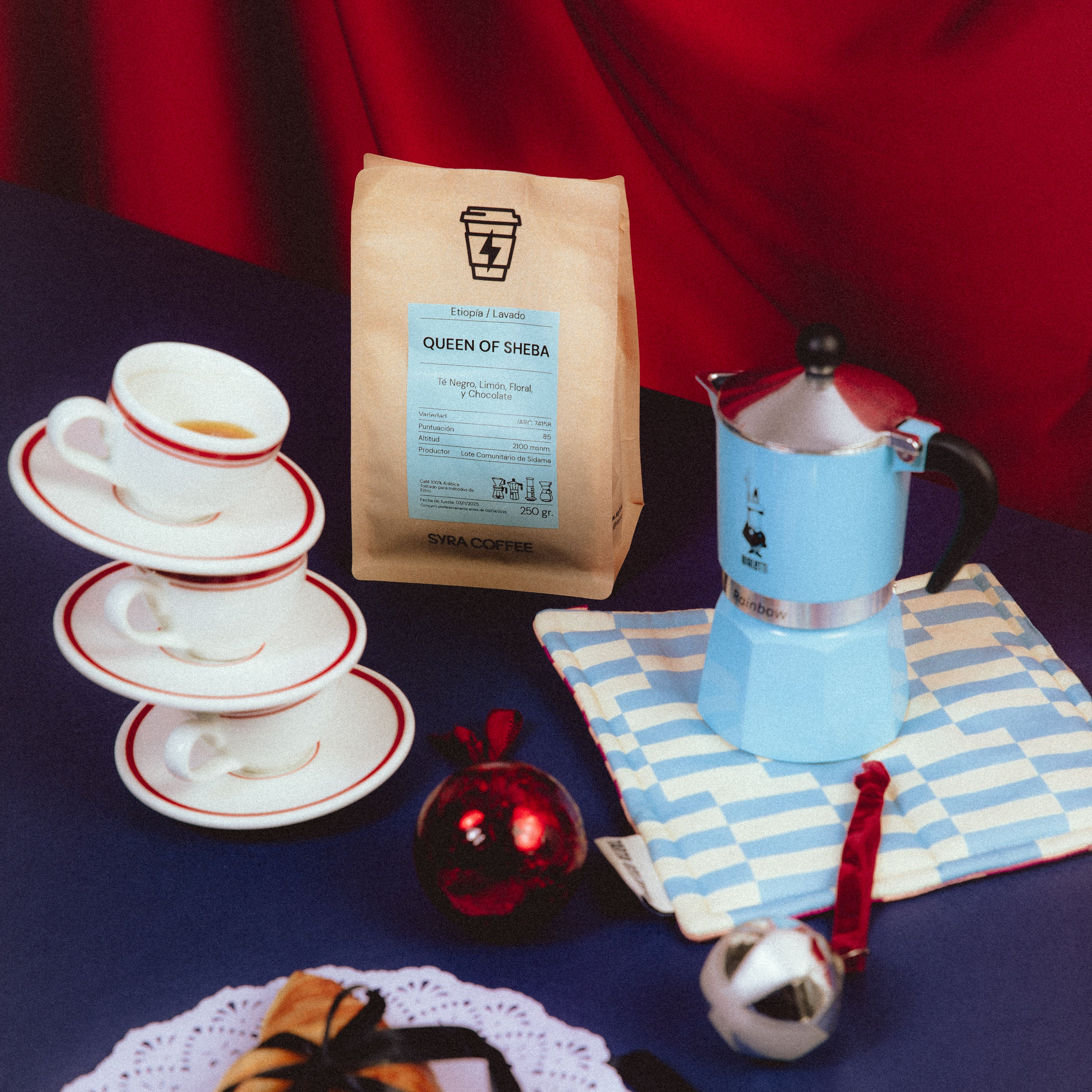 Queen of Sheba – Etiopía: Un café lavado de la región de Sidama Bensa, cultivado a más de 2.100 msnm por productores locales comprometidos con la calidad y la consistencia del perfil etíope más clásico. En taza ofrece una experiencia limpia y delicada, con notas de té negro, limón, matices florales y un fondo achocolatado. Cuerpo medio y acidez equilibrada hacen de Queen of Sheba una opción ideal para quienes buscan claridad, dulzor y elegancia en su café de filtro diario.