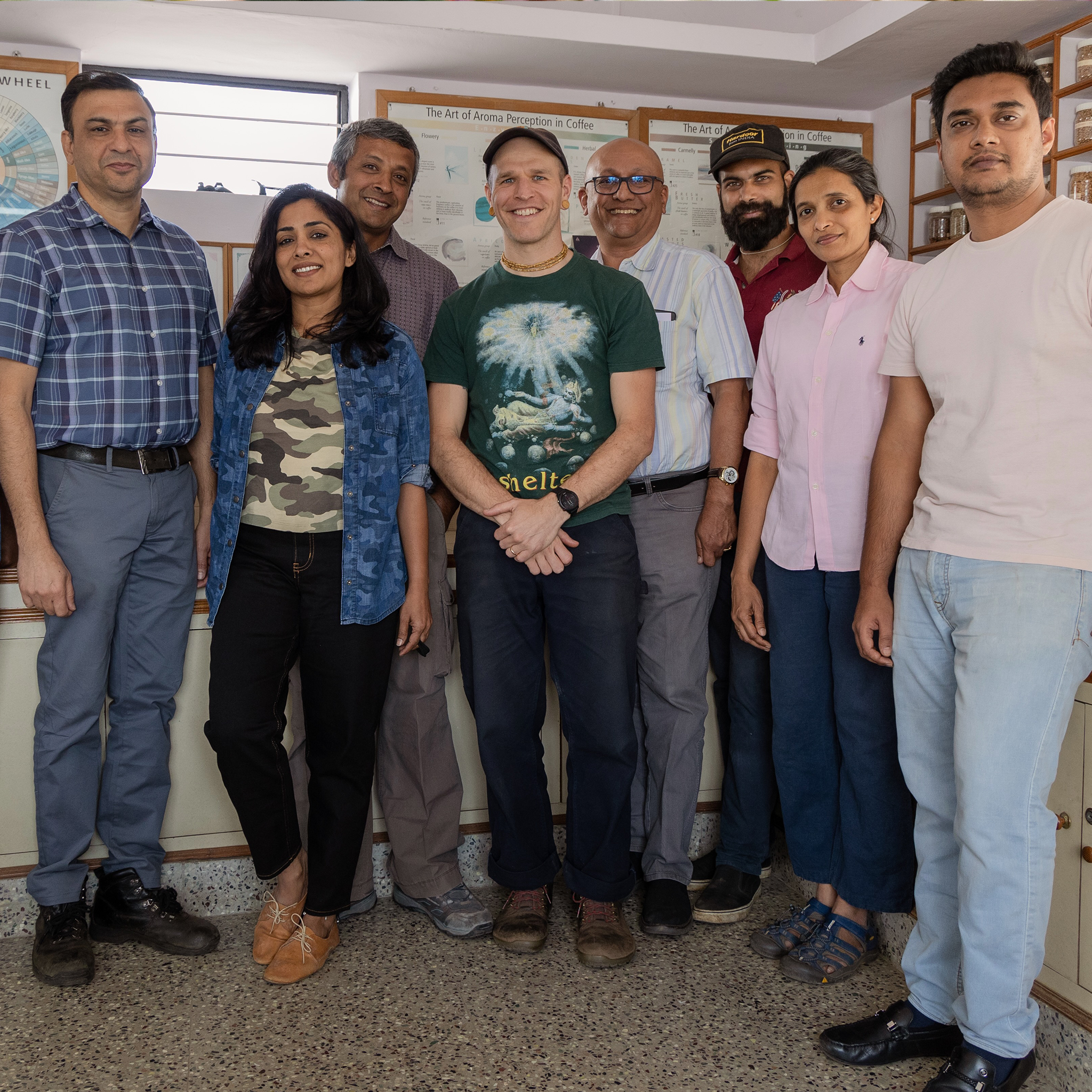 En Hospura Estate, dirigida por Zuheb Abrar, el café crece bajo una rica cobertura de árboles nativos que sirven de hábitat a aves endémicas como el loro Malabar y al ciervo moteado. Zuheb, ingeniero civil de formación, decidió continuar la tradición familiar transformando su finca en un refugio de vida silvestre y un modelo de agricultura responsable.