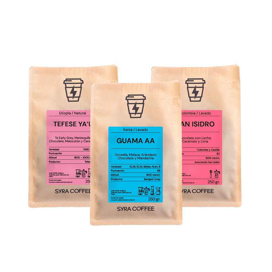 Juntos, Tefese Ya’u, Guama AA y San Isidro proponen un recorrido sensorial que va de la delicadeza floral y dulce del natural etíope al carácter brillante y estructurado de Kenia, hasta un perfil más suave y achocolatado desde Colombia. Tres formas de entender el café, tres terroirs únicos y tres rituales de preparación para descubrir cómo origen y proceso transforman por completo la experiencia en taza.