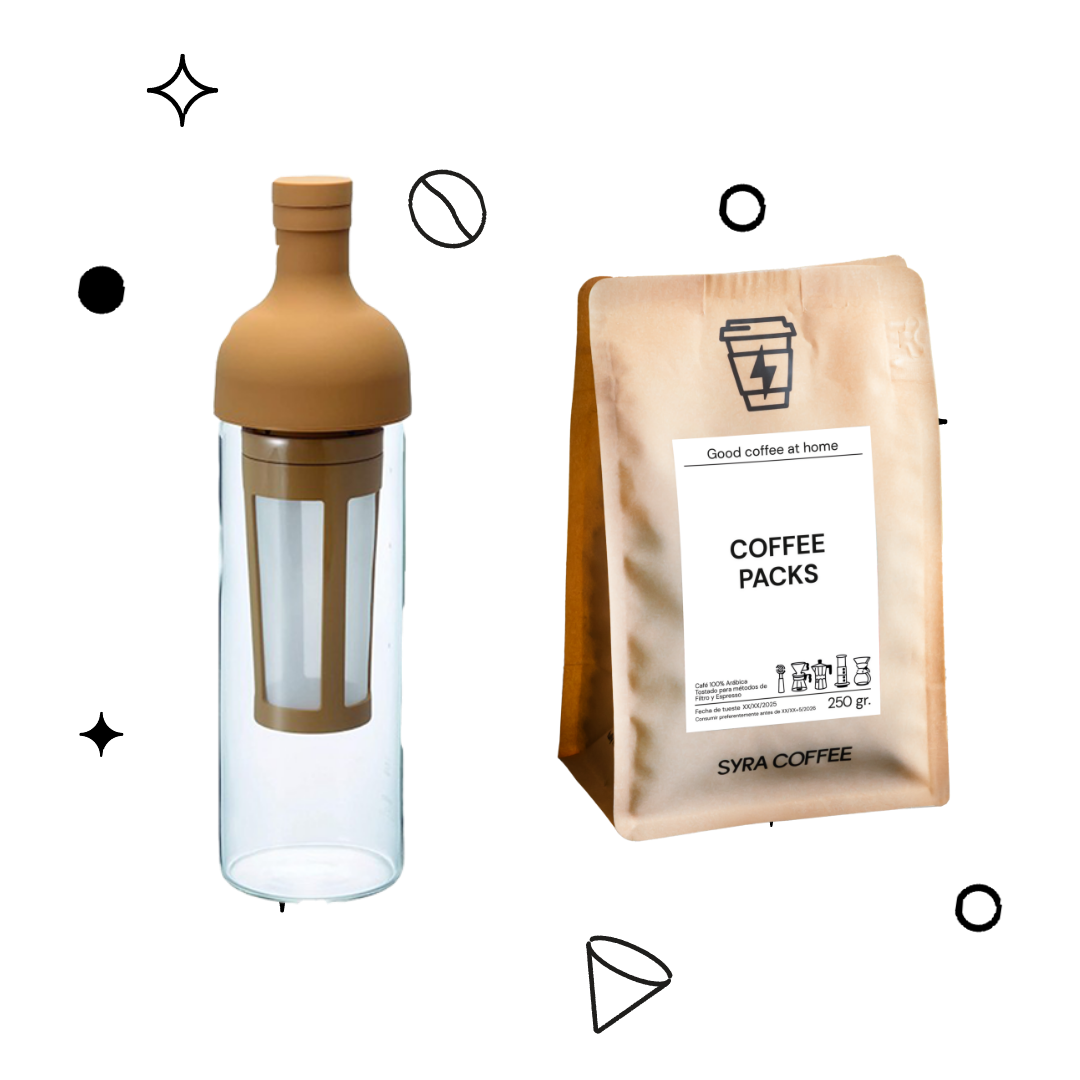 El pack ideal para el verano. Disfruta de un Cold Brew casero, en casa, con esta práctica botella de Hario.